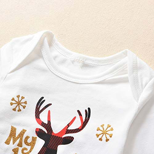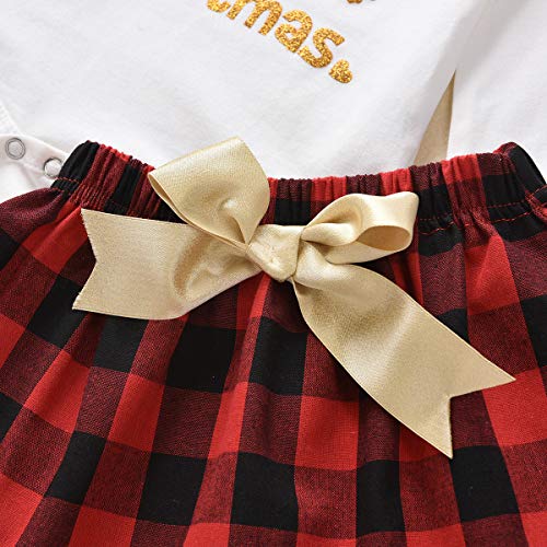 iFCOW Baby Meisje Xmas Kleding Peuter Kerst Kostuum Mijn 1e Kerst Bedrukte Rompers + Rok+Hoofdband 3 Stks/