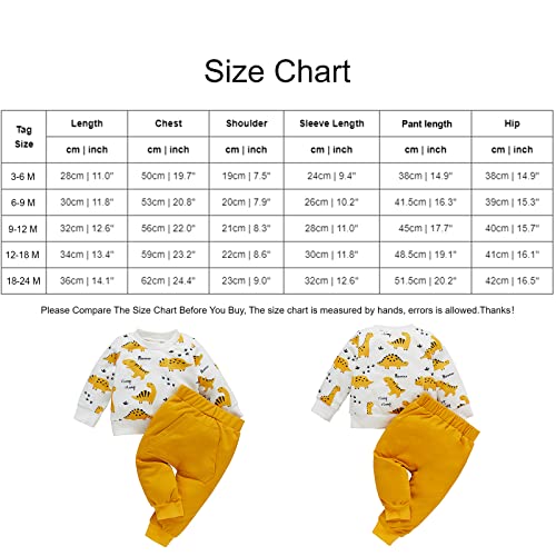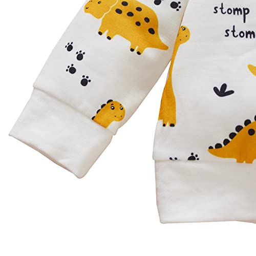 Kenmerken: lange mouwen, dinosaurusprint, leuk en schattig, elastische taillebroek, schattig en modieus, perfect cadeau voor de baby.