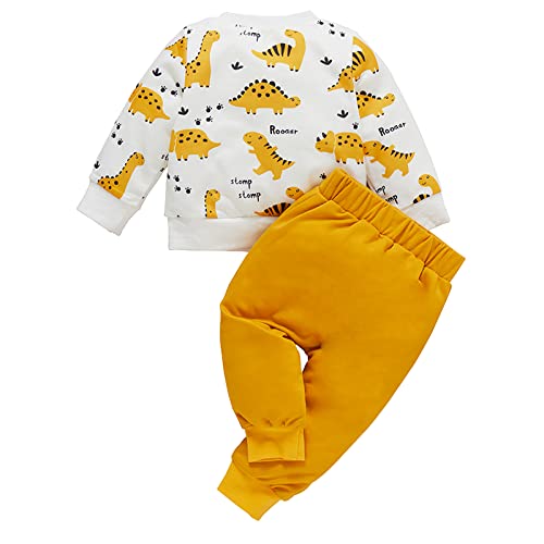 Design – Hoogwaardige baby-jongensset met ronde hals en lange mouwen, schattige dinosaurusprint, elastische taillebroek, modieus en schattig, baby zal veel lof krijgen voor het dragen van deze kledingset.