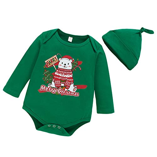 Soapow Baby kerst Romper met hoed,Pasgeboren baby vrolijk kerstcartoon beer Jumpsuit -lang