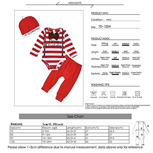 Specificaties: Tianhaik 3 stks Baby Kerst Outfits Mijn 1e Kerst Baby Rode Streep Romper+Broeken+Hoed Gentleman Zoals